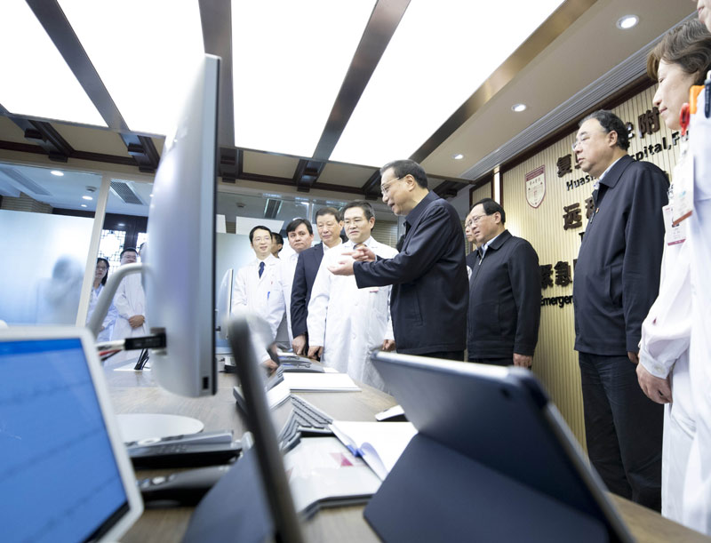 “‘互联网+医疗健康’可以大大有效缓解群众看病就医难题,提升人民群众的健康水平!”李克强说。