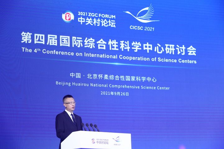 2021中关村论坛第四届国际综合性科学中心研讨会26日以线上线下相结合的方式在北京怀柔举办。图为中科院副院长周琪在研讨会上致辞。(受访单位供图)